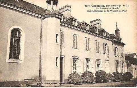 Le manoir de Brault est connu depuis le XVIème siècle, résidence de notaires et d'avocats à la cour de Rennes. Une partie de la terre de Brault a été anoblie en 1638. Est-ce pour cela que notre facétieux grand-père se nommait "FAUCHON du petit Brault" sur certains de ses livres au Lycée de Rennes ? C'est encore un point à étudier mais le manoir a été sans doute vendu à la même époque aux Filles de la Charité, mieux connues comme Soeurs de Saint-Vincent-de-Paul. Elles le transformeront en orphelinat et y ajouteront une chapelle en 1902.