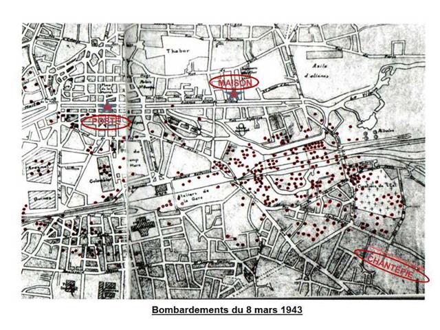 Chers enfants et petits-enfants ne vous imaginez pas une vie paradisiaque à la campagne. Tout ce qui vous parait banal était rationné ou même réquisitionné pour les occupants. Certaines cultures étaient interdites dans votre propre jardin. Chaque jour notre père devait passer deux fois entre la gare et le triage ferroviaire, une zone particulièrement visée par les attaques alliées. Et l'armée allemande avait installé à quelques centaines de mètres sur la route de Vern-sur-Seiche la plus importante batterie anti-aérienne autour de Rennes (8 pièces dont une de 88). Chaque raid allié déclanchait la sirène d'alarme ... et les tirs de la batterie. Et toute la famille devait se réfugier en urgence, y compris en pleine nuit et par tous les temps, dans l'abri creusé par notre père au fond de la prairie.
