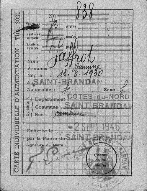 Les cinq ans qui suivront seront assez chargés. Notre père sera présent sur la liste de Monsieur FREVILLE quand celui-ci sera élu maire de Rennes, mais il manquera de peu être élu conseiller municipal. Monique et Nicole viendront agrandir notre famille. Notre père partira un an à Paris à l'école des Télécoms où il a été reçu, et Jeanine nous rejoindra comme "bonne à tout faire" pour aider notre mère restée seule avec quatre enfants. Il y avait toujours des tickets de rationnement, Jean-Claude aura des ennuis de santé et fera un long séjour dans un chalet pour enfants à Saint-Gervais.